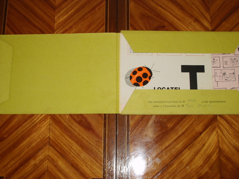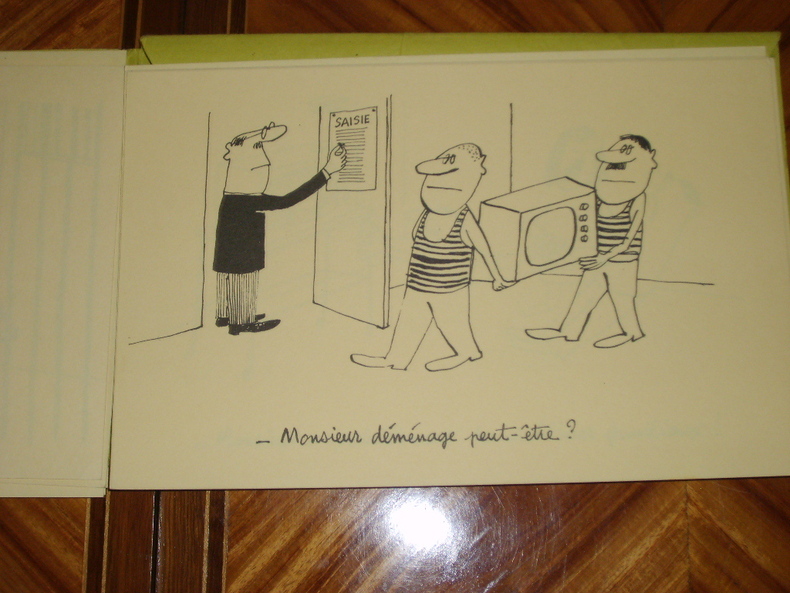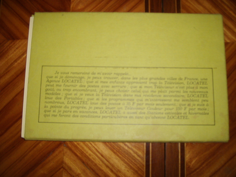 1968 ? 21 X 14 cm., 17 fiches + 1 dépliante. Fiches humoristiques illustrées concernant la location de téléviseurs, sous un étui remplié. Etui un peu sali, fiches en bon état.