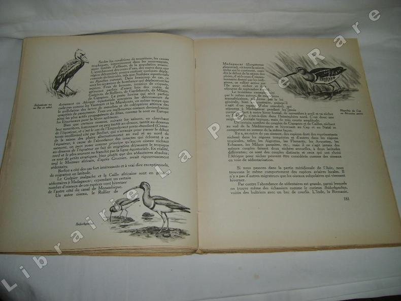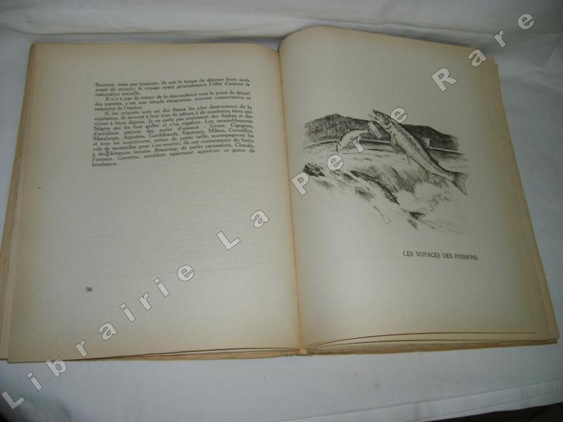 Imprimerie Oberthur Rennes / Paris, 1947, in-4 broché, 354pp. Abondamment illustrées par l'auteur. Activité migratoire des invertébrés, Poissons, Amphibiens et reptile / les oiseaux / Les Mammifères. Petite trace d'eau en bas du dos sinon très bon état.