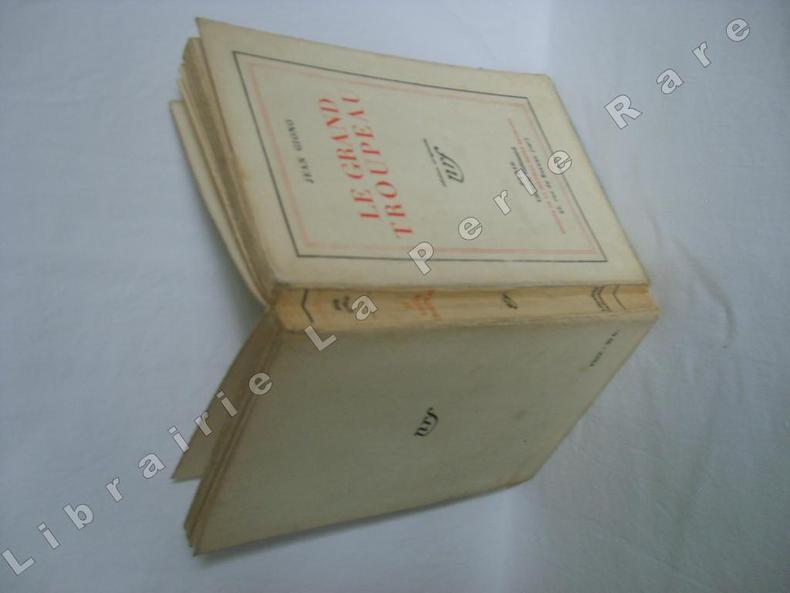 Exemplaire de Janine et Lucien Miallet qui ont publié Le Grand Troupeau dans la Pléiade. Ils disposaient des manuscrits et ont porté en marge une cinquantaine d'annotations au crayon, corrections ou variantes (mots ou groupe de mots remplacés, déformés ou oubliés: exemples: vifs au lieu de vert, couler le mouvement au lieu de rouler le grondement, mai au lieu de midi, foule au lieu de roule...). Giono a récrit quatre fois Le Grand Troupeau, il existe donc quatre manuscrits, l'édition publiée en 1931 suivra de très près le texte du quatrième manuscrit. Giono: "Le Grand Troupeau a été un livre très pénible à écrire pour moi, je l'ai récrit quatre fois, alors j'ai perdu un temps infini.... je n'aime pas beaucoup ce livre". Un document.