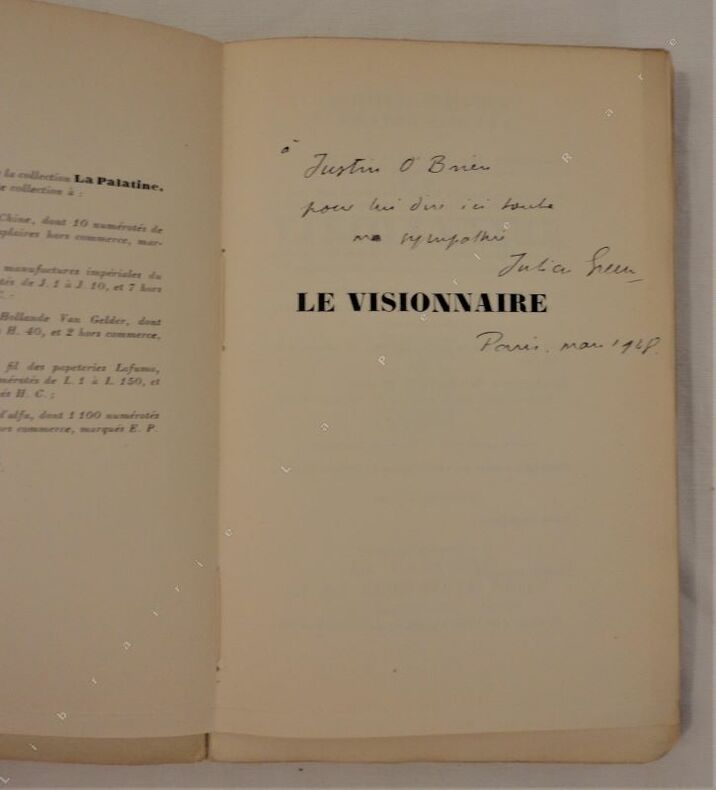 [Paris], Plon, 1934, 13 X 19 cm., broché, 274 pp. Collection La Palatine. Première édition, exemplaire de presse comportant un envoi de l'auteur à Justin O'Brien, traducteur d'Albert Camus et André Gide. Accroc et pli sur la couverture verso, sinon en bel état.
