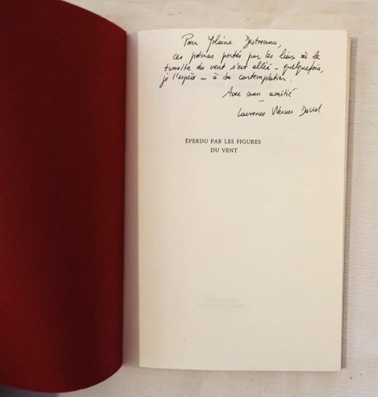 Sans lieu,, Obsidiane, 1999, 13 X 19 cm., broché, 55 pages. Ce recueil de poèmes a obtenu le Prix de la Vocation 1999. Envoi de l'auteure à Yolaine Destremau. Tirage limité à 350 exemplaires. Ouvrage épuisé et rare, en bel état.