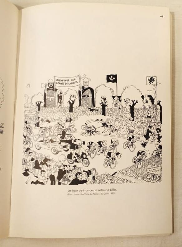 Sans lieu, ni éditeur, ni date,, 20 X 28 cm., broché, 64 pages. Rare album de savoureux dessins humoristiques en noir, tiré à 300 exemplaires. Certains sont issus de "La Voix du Nord" ou de "L'Aurore". Quelques traces sur la couverture, sinon en bel état.