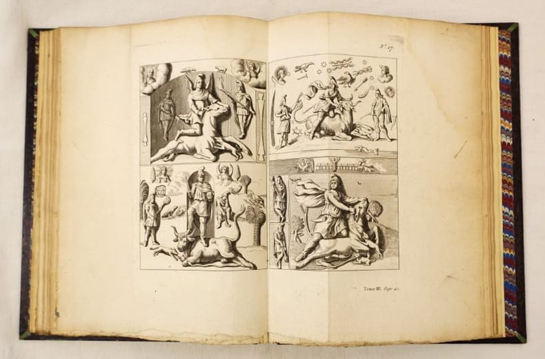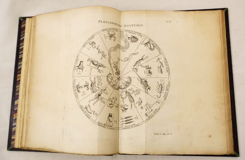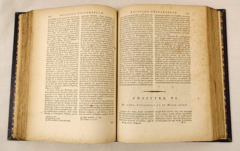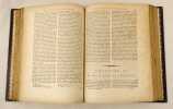 Paris, H. Agasse, An III de la république (1794-1795), 4 volumes, 21 X 27 cm., reliés, XVI-IV-556 ; 302-304 ; 367-355-104 ; 16-22 planches dépliantes. Édition originale composée de trois volumes de texte et un volume de planches avec leurs explications. Impression à doubles colonnes. Frontispice gravé à l'eau-forte par L. Pauquet et au burin par P. H. Triere, d'après Ducoudray, et planches gravées sur cuivre (4e partie). Le dernier volume contient 22 planches et leur explication. Sobres demi-chagrins à nerfs, tête teintée, réalisés par l'atelier Thivet et Durvand et donc exécutés entre 1890 et 1900. Ex-libris du docteur E. Ernous sous forme de cachet humide. Quelques épidermures, de rares réparations anciennes sur les feuillets ou annotations au crayon à papier, et très peu de rousseurs ou mouillures. Néanmoins un bel ensemble.