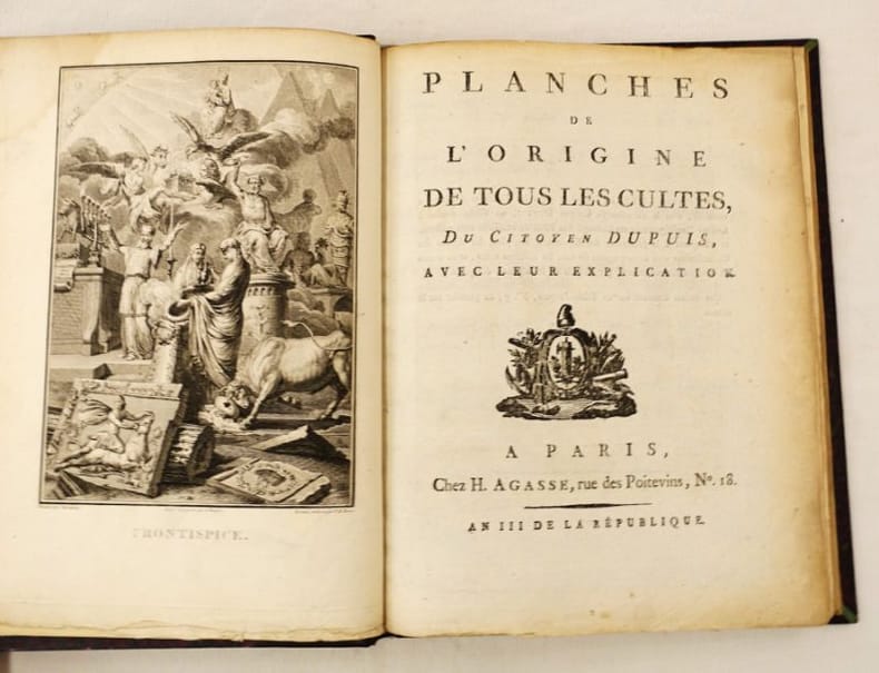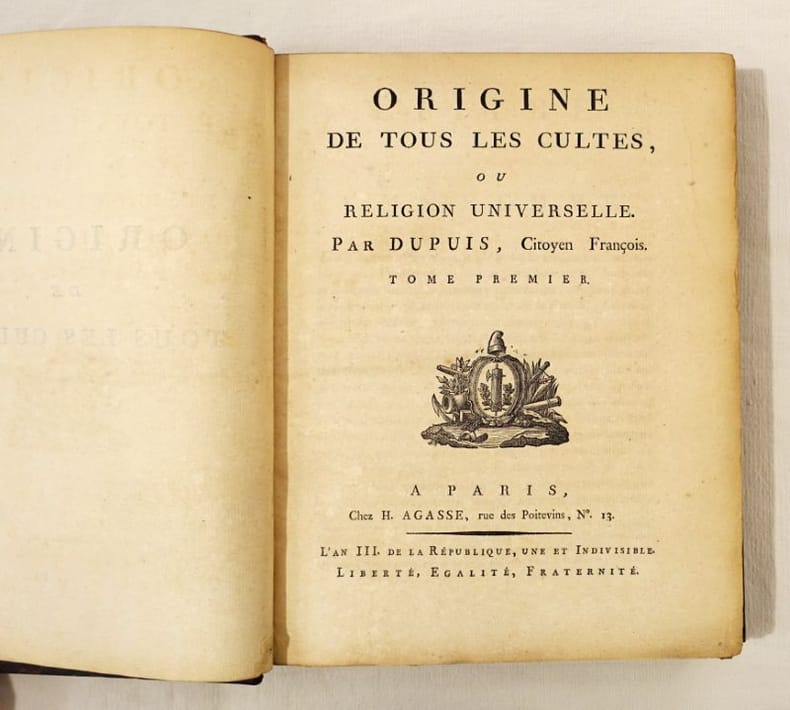 L'auteur sinscrit dans la lignée des idées des Lumières, notamment celles de Voltaire, Diderot ou dHolbach, qui critiquaient déjà les religions révélées et promouvaient une approche rationnelle des mythes. Dupuis radicalise ces idées en proposant une théorie astronomique systématique. Cet ouvrage aurait dû faire partie de lEncyclopédie Méthodique, dite « Encyclopédie Panckoucke », mais a été pris dans la tourmente révolutionnaire.