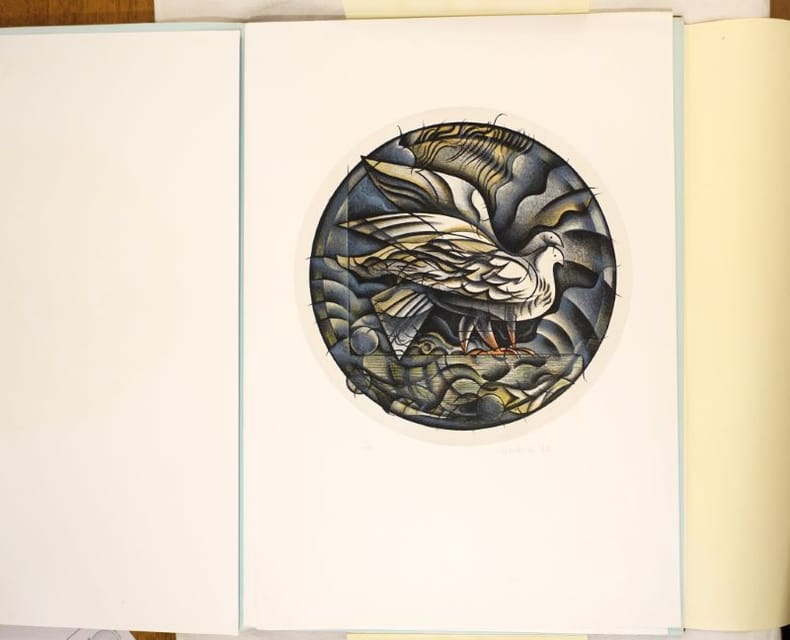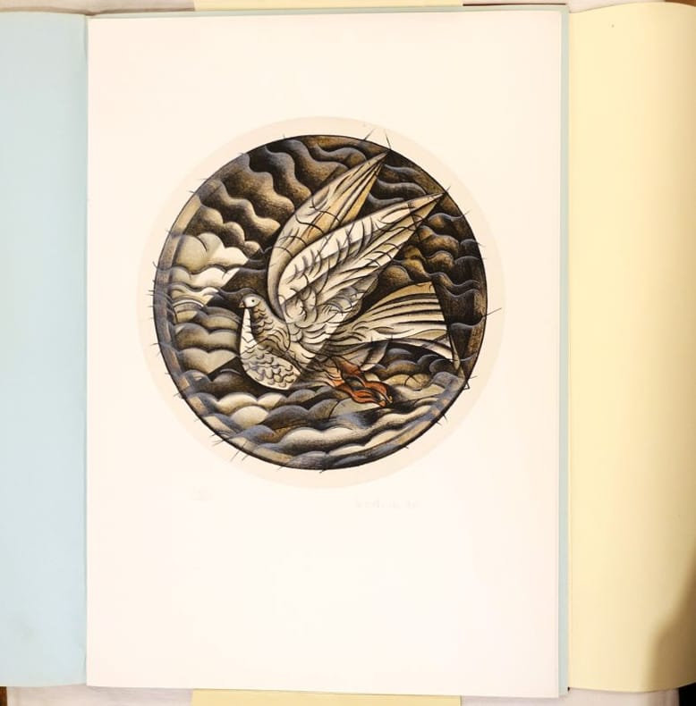 Milano, Gli amici dei Fontana, 1986, 36 X 50 cm., en feuilles, 3 planches. Tirage limité à 99 exemplaires numérotés. Chaque belle lithographie en couleurs est numérotée, signée et datée. Le tout est présenté sous une chemise souple titrée, elle-même protégée par une chemise cartonnée et toilée à rabats. Quelques traces sur la toile, sinon en bel état. Ensemble rare.