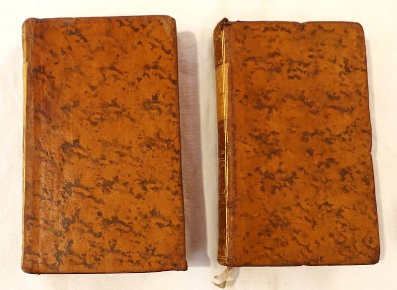 Sur l'imprimé à Aix. A Avignon, de l'Imprimerie des libraires associés, 1783, 2 volumes, 10 X 16 cm., reliés, 205-34-65-122-84 ; 427 pages. Très rare contrefaçon avignonnaise, parue la même année que l'originale à Aix. Pleins veaux marbrés, dos lisse orné, décor sur les coupes et tranches teintées. Deux coiffes abîmées, coins émoussés et quelques épidermures. Teinte des feuillets inégale, peu de rousseurs.
