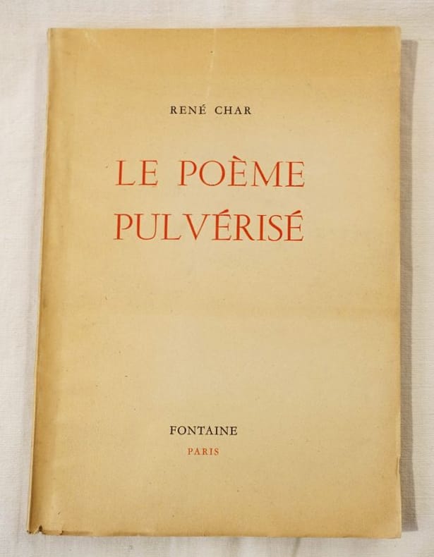 Exemplaire n°902/1200 sur simili-japon. L'ensemble du tirage constituant l'édition originale. Petite restauration sur la couverture. Bibliographie des oeuvres de René Char de 1928 à 1963, par P. A. Benoit des édition Le Demi-jour 1964.