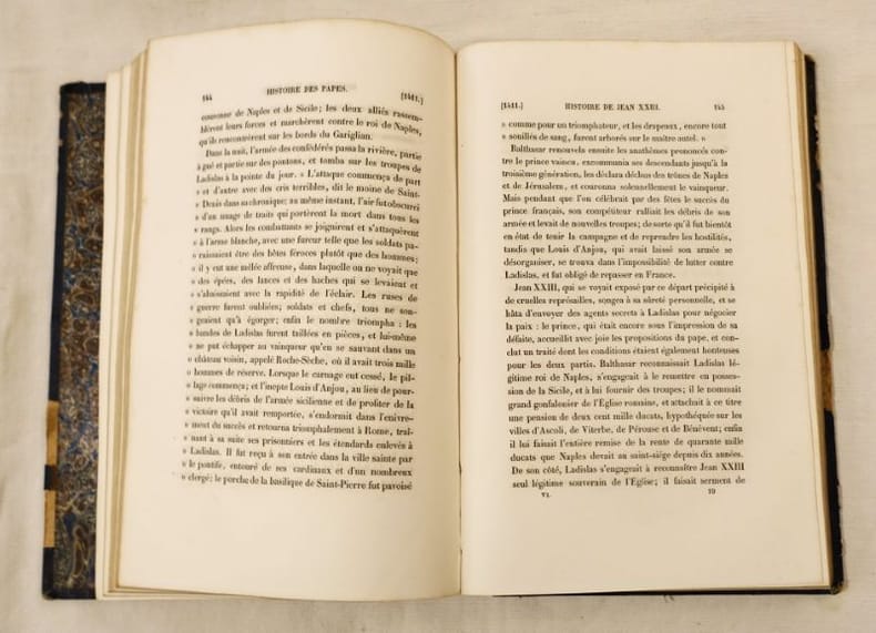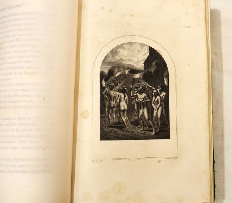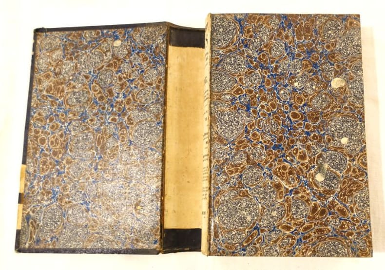 Sans lieu, Administration de Librairie, 1842, 2 tomes en un volume, 16 X 26 cm., relié, 454 ; 430 pages. "Magnifique édition, splendidement illustrée de gravures sur acier, exécutées par nos premiers artistes." Demi-veau à dos lisse au décor romantique, plats percalinés. Petites épidermures, coupes et coins émoussés, charnière supérieure fendue. Les gravures n'ont pas été reliées dans l'ordre, leur papier est bruni. Cachet humide de la Bibliothèque Léon Bienvenu. Rares rousseurs localisées à proximité des gravures ou sur les derniers cahiers .