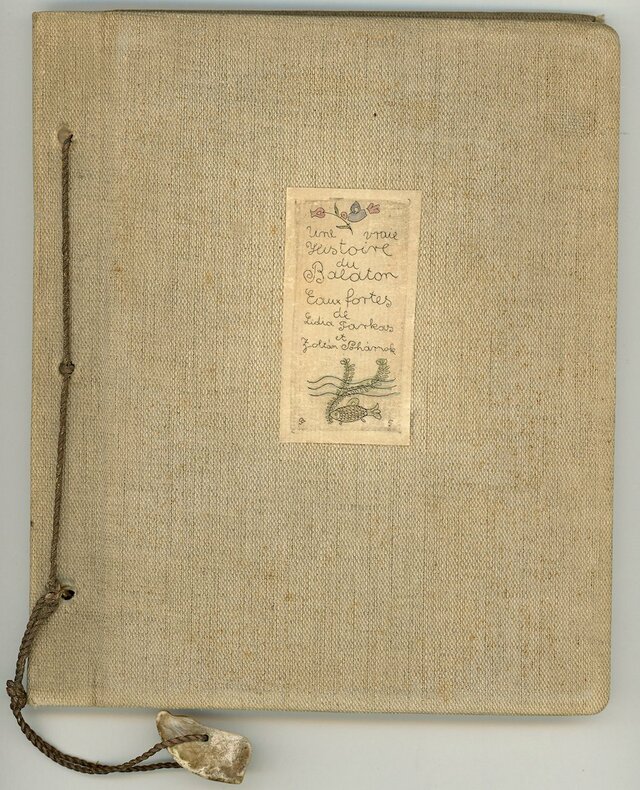 Eaux fortes de Lidia Farkas et Zoltan Poharnok. Traduction française par François Gachot. [À compte d’auteur. Budapest. Vers 1935]. In-8 (20 x 17 cm). (14) planches portant une gravure sur papier vergé appliquée, (1) f. blanc : reliure à la japonaise avec une cordelette terminée d’une pierre, reliure d’origine de toile bis, gravure en couleurs appliquée sur le premier plat.