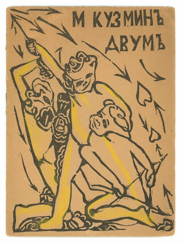 Rare couverture coloriée par l’artiste Ekaterina Ivanovna Turova (1880-1953). Membre du collectif créé par Vera Ermolaeva, elle aspire au retour à la tradition populaire, mission de ce collectif en partie provoquée par les idées des futuristes, tels Burliuk, Gontcharova ou Larionov. Vers du poète symboliste Mikhail Kuzmin (1872-1936). Couverture coloriée à la main, mais sans la mention au revers de la couverture indiquant qu’il est un des 125 exemplaires coloriés à la main.Rare copy with the cover colored by the artist Ekaterina Ivanovna Turova (1880-1953). Lines by the symbolist poet Mikhail Kuzmin (1872-1936).