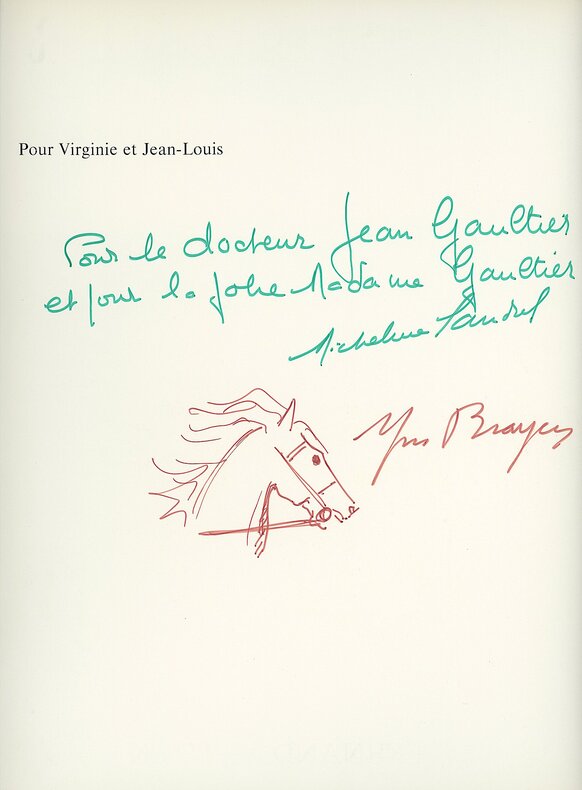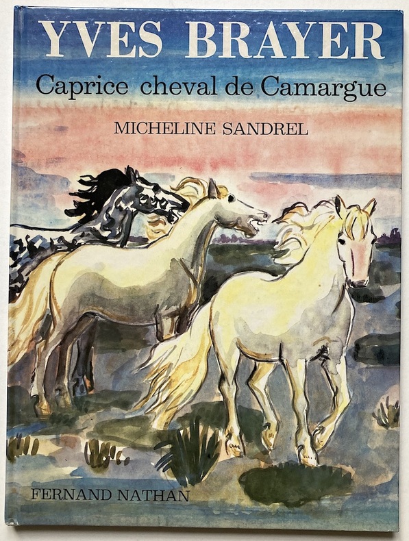 Unique édition. Larges aquarelles à chaque page, paysages de Camargue chers au peintre Yves Brayer (1907-1990). Histoire contée par la pionnière de l’ORTF, Micheline Sandrel. Envoi en couleur de l’auteur et signature de l’artiste avec un dessin original d’une tête de cheval.