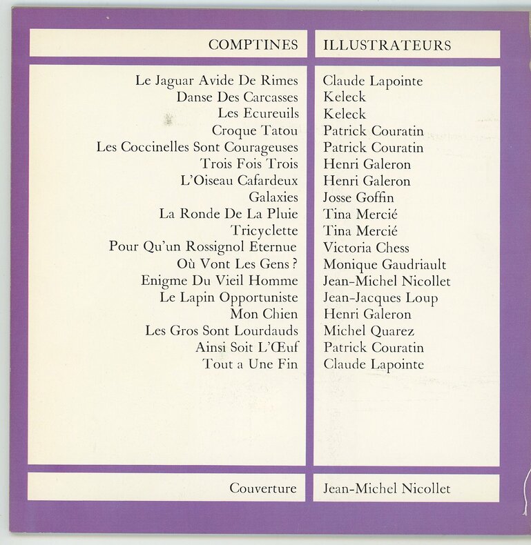 Adaptation de Mona Richez. Mise en page de Patrick Couratin. Publié par Harlin Quist, Inc. France. 1974. In-8 carré (19 x 19 cm). (32) pp. : broché, couvertures souples cartonnées pelliculées, fond mauve, encadrement noir.