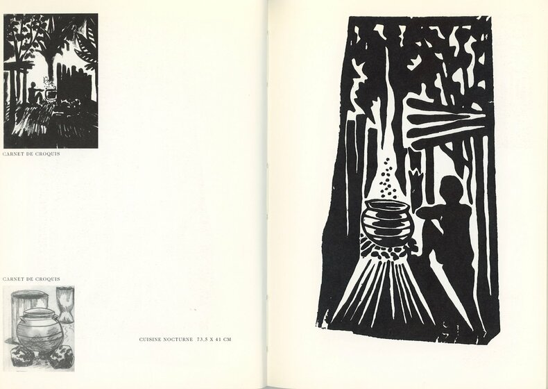 Catalogue de bois gravés originaux réalisés par le peintre de la Figuration libre Hervé Di Rosa, né en 1959, durant son séjour au Ghana et exposées à la galerie Louis Carré à Paris 8e en décembre 1994.