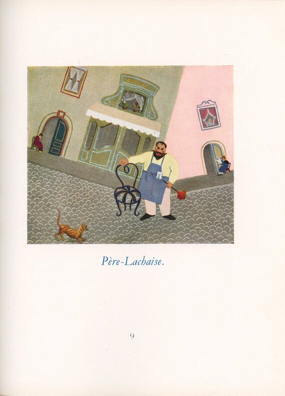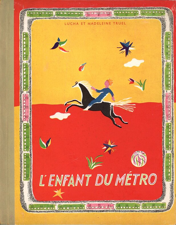 Unique édition. Inspirée par la poésie des stations de métro Lucha Truel (1907-2000) dessina sur ce thème dès les années 1930. Illustratrice et décoratrice, née au Pérou et formée à l’école de Paul Colin, elle travailla également pour la presse. Vingt-deux planches hors texte surréalistes et colorées, chacune traduisant littéralement une station de métro. Ce conte irréel de l’enfant seul dans le souterrain depuis sa naissance, publié en 1943 et écrit par sa sœur Madeleine (1904-1945 Stolpe, Allemagne), a parfois été lu comme “une allégorie de l’occupation, d’enfermement dans les camps et d’espoir en la libération.” Queneau disait que cet ouvrage lui avait donné quelques idées pour Zazie. En parfait état. Le Vieux Papier. Bulletin n° 377, 304 et 378, 376. J. Roubaud. F. Lévèque. Revue de la BnF n° 20 2005.