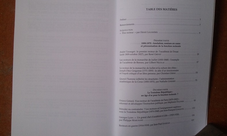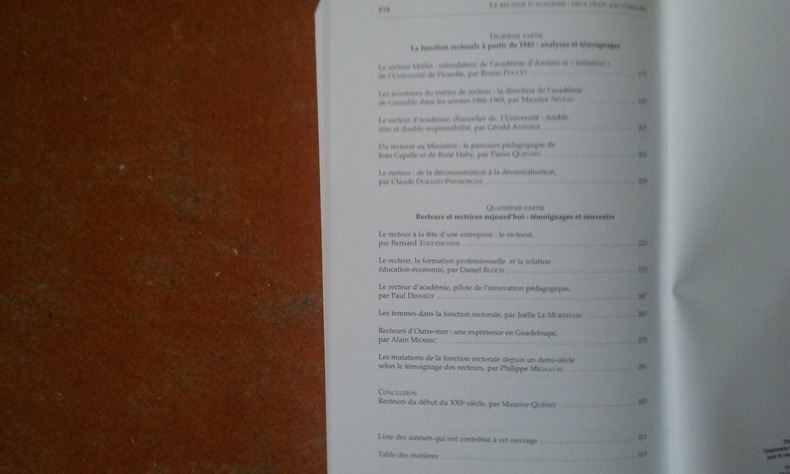 Cet ouvrage collectif publié dans le cadre du bicentenaire de la fonction de recteur, mêle habilement les témoignages aux articles historiques. Il met en lumière les différentes facettes du travail de recteur d'académie tout en soulignant l'évolution de leur rôle depuis le XIXe siècle. Voir le sommaire sur photos jointes.