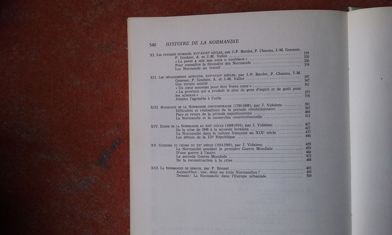 Rédigé en 1970, ce vieux classique ne parle donc pas des dernières décennies et ignore les résultats des dernières fouilles archéologiques. Néanmoins, il est difficile de trouver ouvrage plus complet. Ce livre s’adresse d'abord à ceux que la plume universitaire ne rebute pas. Contributeurs : Jean Dastugue, Louis Harmand, Lucien Musset, Michel de Boüard, Jean Favier, Pierre Chaunu, Jean-Pierre Bardet, Jean-Marie Gouesse, Pierre Gouhier, Anne et Jean-Marie Valez, Jean Vidalenc, Pierre Brunet. Voir le sommaire sur photos jointes.