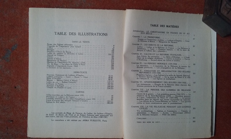 Librairie Protestante 14,5 x 19,5 Paris 1959 Broché, couverture illustrée à rabats, 255 p. Nombreuses illustrations in et hors-texte et 5 cartes hors -texte. Index des noms de lieux et de personnes. Sommaire : La Préréforme / Les Débuts de la Réforme / Calvin et la Réforme française / La période héroïque (1535-1554) / Fondation et organisation des églises réformées (1555-1560) / Epanouissement des églises (1561-1562) / La période des guerres de religion (1562-1595) / La Vie religieuse pendant les guerres civiles. Pliure au dos, petite usure d'usage en bas du dos, couverture en bon état, intérieur parfait. Très bon exemplaire.(C19) Livre