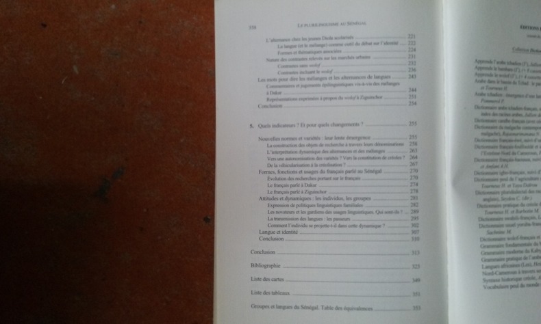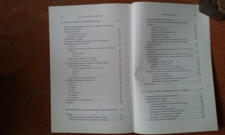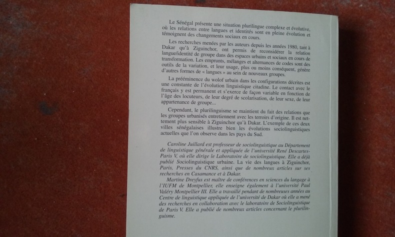 Le Sénégal présente une situation plurilingue complexe et évolutive, où les relations entre langues et identités sont en pleine évolution et témoignent des changements sociaux en cours. Les recherches menées par les auteurs depuis les années 1980, tant à Dakar qu'à Ziguinchor, ont permis de reconsidérer la relation langue/identité de groupe dans des espaces urbains et sociaux en cours de transformation. L'exemple de ces deux villes sénégalaises illustre bien les évolutions sociolinguistiques actuelles que l'on observe dans les pays du Sud. Voir le sommaire sur photos jointes.