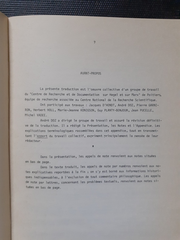 Librairie philosophique J. Vrin, 1976, in-8 br. (16 x 24), 56 p., coll. "Bibliothèque des Textes philosophiques", traduction et notes sous la direction de André Doz, bon état.