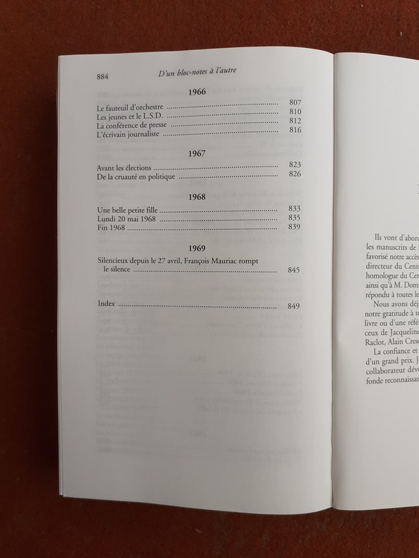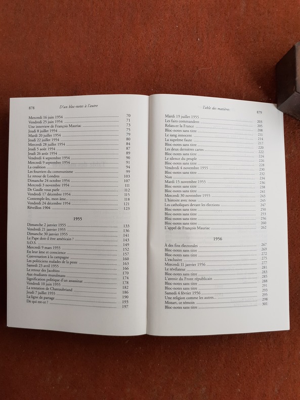 Cet ensemble reprend tous les écrits journalistiques de François Mauriac. Il le révèle constamment souverain de son art, sautant avec brio de la politique à la littérature, sa curiosité toujours en éveil, mais sur fond d'inquiétude spirituelle. Plus de quinze ans d'actualité sont le support de son talent journalistique qui s'épanouit tant dans la chronique ou l'éditorial que dans la conférence ou l'interview, élevant le journalisme à la hauteur de genre littéraire. Voir le sommaire sur photos jointes.