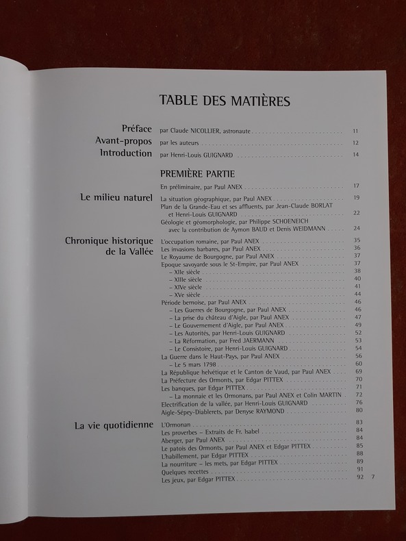 Riche monographie, remarquablement documentée, sur la vallée des Ormonts, dans les Préalpes vaudoises. Histoire, géographie et vie quotidienne. Avec de nombreux documents ainsi qu'une liste des dates importantes (p. 340-341). Bibliographie. Les auteurs sont : Paul Anex, Marie-Claude Busset-Henchoz, Henri-Louis Guignard, Edgar Pittex, Denyse Raymond, Philippe Schoeneich. Voir le sommaire sur photos jointes.