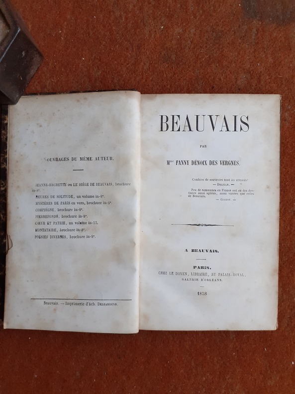 Beauvais, Impr. A. Desjardins / Paris, chez Le Doyen, 1858, in-12 rel. 1/2 peau marron ( 10,5 x 17,5), 172 p., E.O., plats un peu frottés, traces de mouillure claires angulaires, reliure solide, assez bon état.