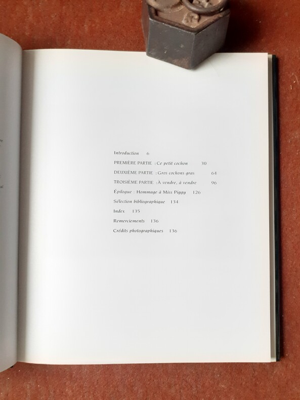 Il suffit de dire le mot "cochon" pour que tout le monde sourie. Les gens imaginent la peau rose, la queue en tire-bouchon et l'adorable groin d'un cochonnet, et pensent aussitôt à Miss Piggy, l'inénarrable vedette du Muppet Show, aux Trois Petits Cochons du conte, ou encore à Porky, le bègue lunatique des dessins animés de Tex Avery. Comment avoir une opinion tranchée au sujet du cochon : méticuleux mais gras, gros mais gourmet, flegmatique mais rusé, il est à la fois irrésistible, mystérieux et aussi contradictoire que le rôle que nous jouons dans sa vie et sa mort. Les images qu'il évoque au plus profond de nous trahissent la complexité de nos sentiments : un mélange surprenant de tendresse et de répulsion, de sensiblerie et de culpabilité. Marilyn Nissenson et Susan Jonas jettent un regard affectueux sur cette créature fascinante et bien souvent incomprise. Les 165 photographies (dont 90 en couleurs) et les nombreux textes, poèmes, anecdotes et aphorismes qui les accompagnent- Harry Truman n'a-t-il pas déclaré un jour que "Aucun homme ne devrait pouvoir être Président s'il ne comprend pas les cochons" -, illustrent ces relations protéiformes qu'entretiennent entre eux les hommes et les cochons : séduction, dignité, obsession, tendresse et férocité. C'est ainsi que, de l'Antiquité à nos jours et d'Herculanum à Hollywood, les cochons ont inspiré de nombreux caricaturistes, écrivains - d'Ovide à Dylan Thomas -, et artistes - de Jérôme Bosch à Henri Cartier-Bresson. Une introduction vivante, pleine d'anecdotes, une brève bibliographie destinée aux véritables amateurs - les suidéphiles ? - et un index complètent ce passionnant ouvrage. Voir le sommaire sur photos jointes.