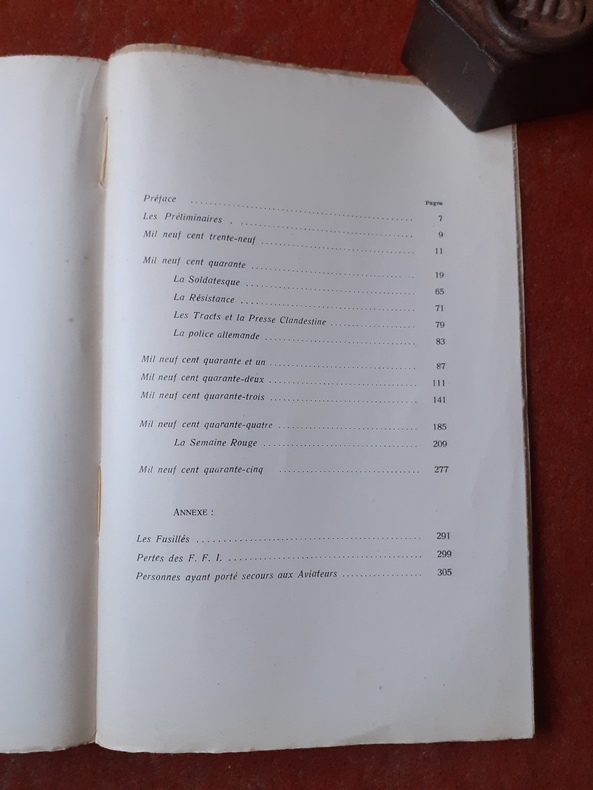 Ce journal est la somme des observations consignées au jour le jour par un Rouennais de la déclaration de guerre à la capitulation allemande. Il relate mois par mois les petits et grands événements qui se déroulèrent durant l'Occupation et livre un témoignage sur la ville mutilée, la Résistance et les bombardements. Voir le sommaire sur photos jointes.