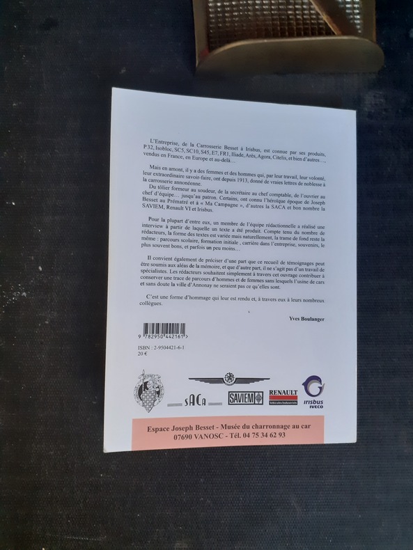 Recueil de témoignages d’hommes et de femmes à la retraite ou en activité, acteurs de l'aventure humaine et industrielle de l'entreprise annonéenne. 97 personnes ont apporté leurs souvenirs et points de vue sur l’histoire du charronnage au car, de Besset à Iveco Irisbus. Voir le sommaire sur photos jointes.