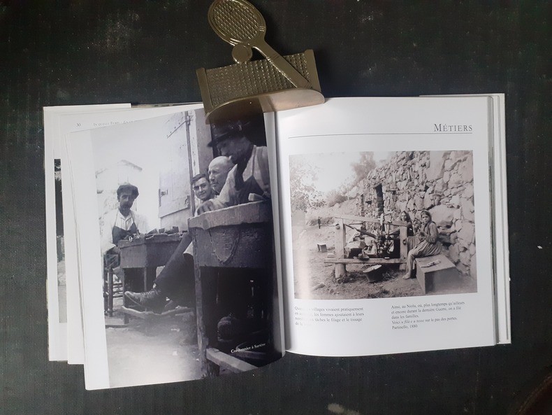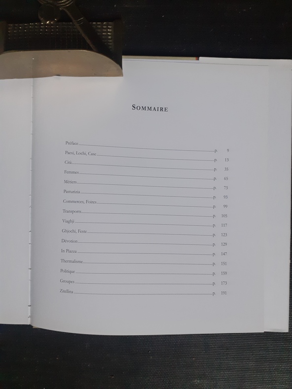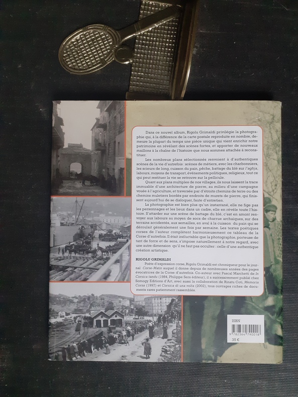 Dans cet album, Rigolu Grimaldi privilégie la photographie qui, à la différence de la carte postale reproduite en nombre, demeure la plupart du temps une pièce unique qui vient enrichir notre patrimoine en révélant des scènes fortes, et apporter de nouveaux maillons à la chaîne de l'histoire que nous sommes attachés à reconstituer. Les nombreux plans sélectionnés renvoient à d'authentiques scènes de la vie d'autrefois : scènes de métiers, avec les charbonniers, les scieurs de long, cuisson du pain, pêche, battage du blé sur l'aghja, labours, moyens de transport, événements politiques, religieux, tout ce qui peut restituer la vie se retrouve sur la pellicule. Quant aux plans multiples de nos villages, ils nous laissent la trace immuable d'une architecture de pierre, au milieu d'une campagne vouée à l'agriculture, et traversée par d'étroits chemins de terre ou des chemins muletiers bordés par endroits de murets de pierre, qui finissent aujourd'hui de se disloquer, faute d'entretien. La photographie est bien plus qu'un instantané, elle ne fige pas les personnages et les lieux dans un cadre, elle en révèle toute l'histoire. S'attarder sur une scène de battage du blé, c'est en amont renvoyer aux labours au moyen de socs de charrue archaïques, sur des terrains accidentés, aux semailles, en aval à la cuisson du pain qui se déroulait généralement une fois par semaine. Les textes poétiques corses de l'auteur complètent harmonieusement ce tableau de la Corse d'autrefois. Il était inéluctable que la photographie, porteuse de tant de force et de sens, s'impose naturellement à notre regard, avec une autre dimension qu'il ne faut pas occulter : celle d'une authentique création artistique. Voir le sommaire sur photos jointes.