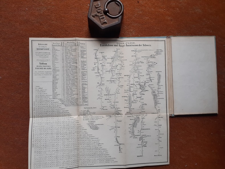 Rares cartes de voyage. Une carte dépl. 27x30 comportant un tableau des plus importants passages des Alpes avec indication des distances en lieues suisses et une table des distances en lieues suisses d'un chef-lieu à l'autre. Une grande carte dépliante en couleur 34x50.