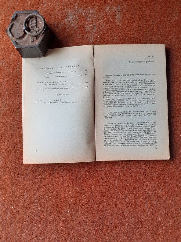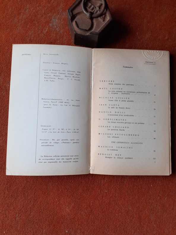François Maspero, 1961, in-8 br.,154 p., N° 1 de septembre-octobre 1961 , présentation par Vercors, bon état.