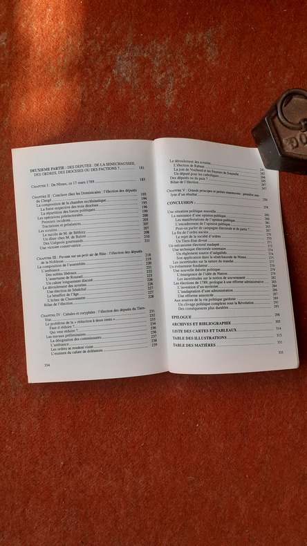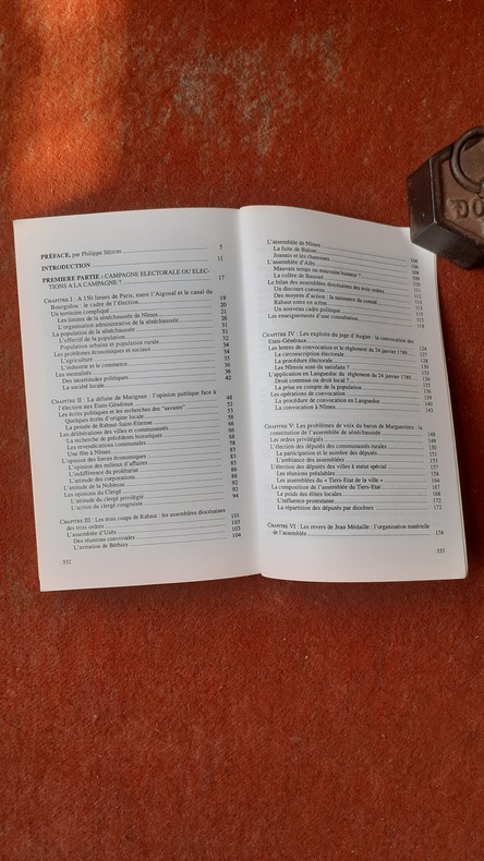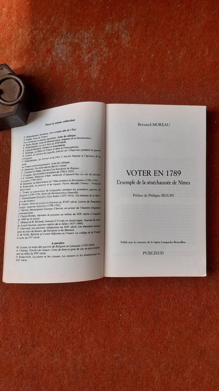 Si les élections de 1789 sont l'occasion d'observer la naissance des phénomènes politiques à l'état brut, un peu comme dans une expérience de laboratoire, leur examen permet aussi de se pencher sur les passions individuelles et très humaines qui ont animé les acteurs de cette histoire. Il fait donc mieux comprendre comment le goût de la politique est né chez les gens de Nîmes. Voir le sommaire sur photos jointes.