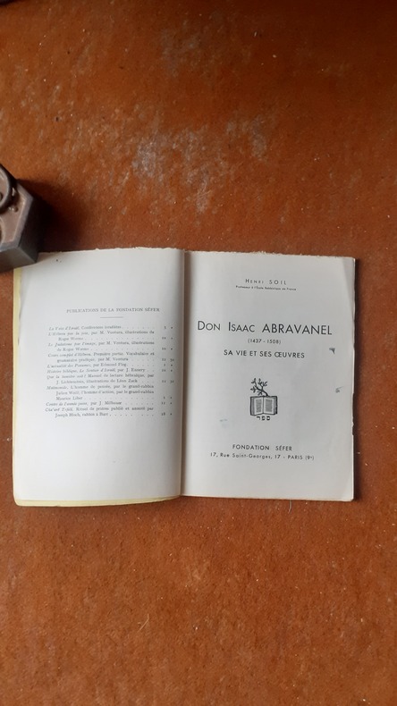 Fondation Séfer, 1937, in-8 br. (14 x 19), 63 p., couverture passée, tache au plat inf., intérieur propre, assez bon état.