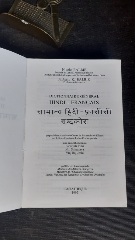Le premier grand dictionnaire de la langue hindi pour les francophones. Réalisé dans le cadre du Centre de recherche et d'étude sur le sous-continent indien contemporain. Un instrument de travail et de référence indispensable pour tous ceux qui s'intéressent à la langue officielle de l'Inde. Comprend 25.000 entrées, un précis grammatical en début de volume et la transcription de tous les mots en caractères romains avec les signes diacritiques. Voir le sommaire sur photos jointes.