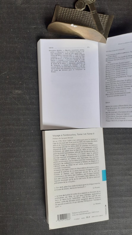 Né en 1799, René Caillié s'est embarqué pour le Sénégal à l'âge de dix-sept ans. Il est mort en 1838, des suites des maladies et de l'épuisement subis au cours de son voyage. Son voyage africain de 1824 à 1828, de caravane en caravane, déguisé en Arabe, converti à l'Islam et le pratiquant scrupuleusement, est passé dans la légende. Mais on n'en connaît guère la réalité quotidienne, telle qu'elle est décrite dans son journal Voyage à Tombouctou et à Jenné, dont le présent ouvrage reprend intégralement la première édition de 1830. Celui-ci constitue un tableau sans équivalent des sociétés arabes et africaines encore dans toute leur souveraineté, des échanges de civilisations à travers le Sahara, du Maghreb à l'Afrique noire, au début du XIXe siècle, avant la pénétration coloniale européenne. À travers ces pages riches en observations de toutes sortes apparaît le portrait de ce jeune homme d'origine ouvrière, humble et obstiné, tout imprégné encore de la soif de connaissance du siècle des lumières, qui vit dans l'abnégation une véritable ascèse : un voyageur bien différent de la légende douteuse qui fit de lui une sorte de héros national précurseur de la conquête... Voir le sommaire sur photos jointes.