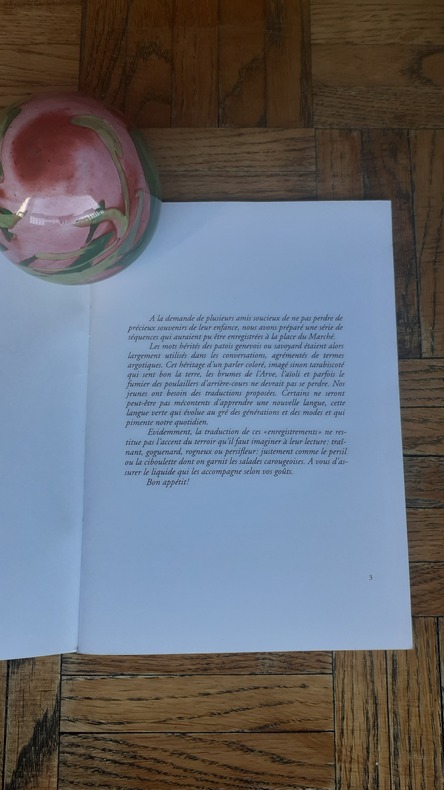 Un recueil pour ne pas oublier les mots colorés, hérités du patois genevois ou savoyard, qui auraient pu être enregistrés à la place du Marché.