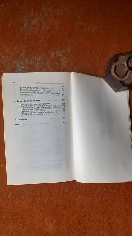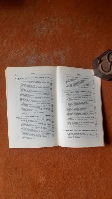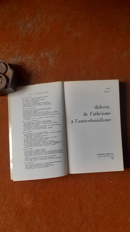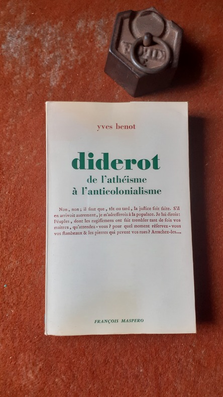 L'intérêt du livre d'Yves Benot n'est pas seulement dans la mise en lumière des textes de Diderot insérés, en 1774 et en 1781, dans l'"Histoire des deux Indes". L'auteur a voulu montrer d'abord comment Diderot avait été amené à ces prises de position, à la lettre, révolutionnaires, dans un ouvrage qui eut infiniment plus de lecteurs que l'Encyclopédie". Voir le sommaire sur photos jointes.