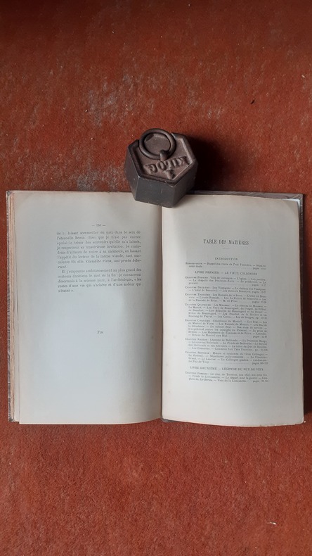 Brive, Impr. Roche, 1896, gr. in-8 rel. 1/2 toile marron (16,5 x 26), IV-274 p.,1ère édition, "Extrait du Bulletin de la Société Scientifique, Historique et Archéologique de la Corrèze, tome XVIII", avec des dessins de Ernest Rupin et des photographies de Joseph Cerou, un plan du vieux Collonges par l'auteur, in-fine a été ajoutée une note manuscrite d'une page de M. J. B. Champeval, archiviste paléographe sur la famille Bial de Queysseral de Bellerade reçue après l'impression de l'ouvrage, reliure récente, dos muet, bon état.