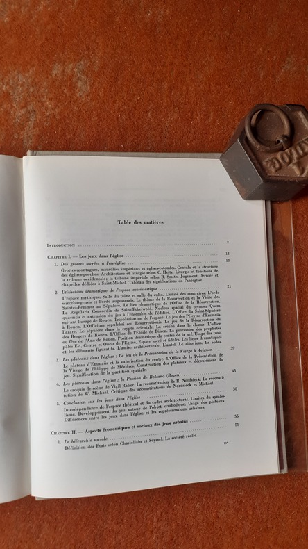 Analyse détaillée de l’évolution de l’espace théâtral en Europe et particulièrement en France : ruptures entre l’espace ecclésiastique et l’espace urbain (mystères, entrées) mais continuité d’une symbolique, mélange de politique et de sacré. Analyse socio-économique des manifestations théâtrales médiévales. Voir le sommaire sur photos jointes.