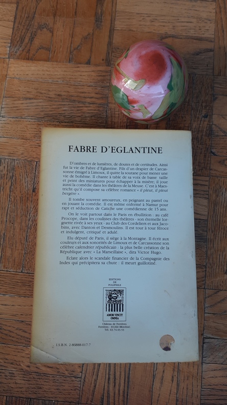 D’ombres et de lumières, de doutes et de certitudes. Ainsi fut la vie de Fabre d’Églantine. Fils d’un drapier de Carcassonne émigré à Limoux, il quitte la soutane pour mener une vie de bohème. Il chante à table, de sa voix de basse, taille et peint des miniatures pour échapper à la misère ; il joue aussi la comédie dans les théâtres de la Meuse. C’est à Maestricht qu’il compose sa célèbre romance "il pleut, il pleut bergère". Il tombe souvent amoureux, en peignant au pastel ou en jouant la comédie. Il est même enfermé à Namur pour rapt et séduction de Catiche, une comédienne de 15 ans. On le voit partout dans le Paris en ébullition : au café Procope, dans les coulisses des théâtres – son éternelle lorgnette rivée à ses yeux – au Club des Cordeliers et aux Jacobins, avec Danton et Desmoulins. Il est, tour à tour, féroce et indulgent, critiqué et adulé. Élu député de Paris, il siège à la Montagne. Il écrit – aux couleurs et aux sonorités de Limoux et de Carcassonne – son célèbre calendrier républicain : la plus belle création de la République avec "La Marseillaise", dira Victor Hugo. Éclate alors le scandale financier de la Compagnie des Indes, qui précipitera sa chute : il meurt guillotiné.