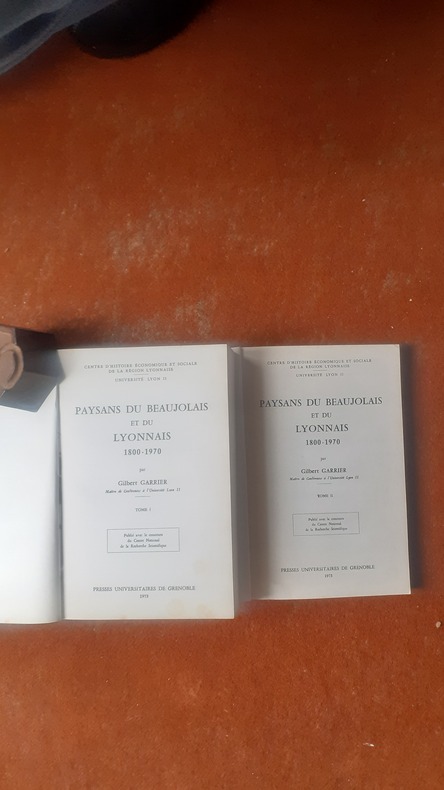 Un bel exemple d'histoire érudite. Une étude approfondie qui explore la vie et les transformations des agriculteurs dans cette région emblématique de la France. À travers deux volumes, l'auteur retrace l'évolution sociale, économique et culturelle des paysans, mettant en lumière leur rôle essentiel dans le développement de la région. Garrier s'appuie sur une riche documentation historique, des témoignages et des analyses statistiques pour offrir un panorama complet de la condition paysanne sur plus d'un siècle. Ce livre se distingue par son approche méthodologique rigoureuse et son souci du détail, permettant au lecteur de comprendre non seulement les défis auxquels faisaient face les paysans, mais aussi leur résilience et leur capacité d'adaptation face à des changements économiques profonds, tels que l'industrialisation et les transformations agricoles. En parallèle, Garrier évoque les traditions, les croyances et les pratiques qui ont façonné le quotidien des agriculteurs, rendant hommage à leur patrimoine culturel. Voir le sommaire sur photos jointes.