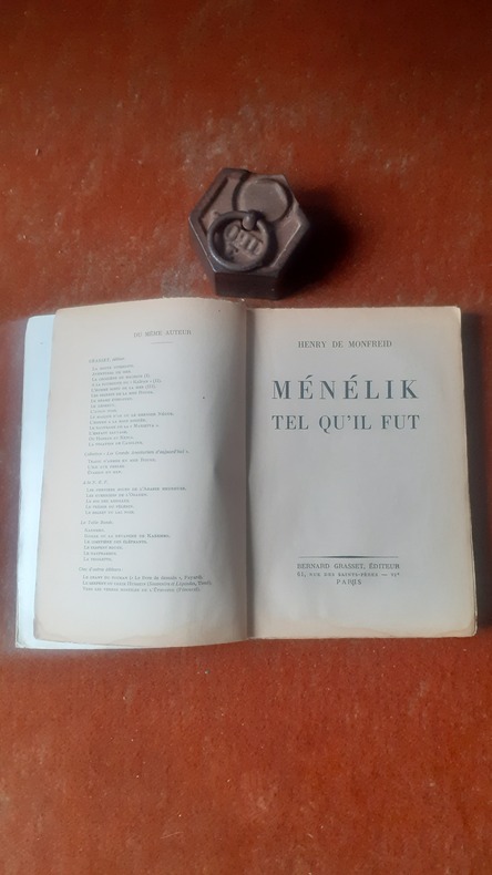 Dans un chapitre liminaire d'un puissant raccourci, Henry de Monfreid résume l'histoire de ce qu'on peut appeler un anachronisme politique, avant de brosser le portrait et la chronique de celui qui fut le créateur de l'Ethiopie actuelle : Ménélik II, roi du Choa, puis empereur de 1889 à 1913. Et c'est sans exagération aucune qu'il le dénomme le Louis XI africain. Nul mieux qu'Henry de Monfreid n'était qualifié pour évoquer Ménélmik et son pays. Il a vécu près d'un demi-siècle en Ethiopie, et ses livres témoignent de l'acuité, de la netteté de son observation de la vie éthiopienne comme de l'amour qui lui porte. Il a approché beaucoup de compagnons de l'empereur, de ceux qui partagèrent ses luttes, et a obtenu d'eux quantité de souvenirs, de renseignements, d'anecdotes. Et peut-être est-il aujourd'hui l'un des derniers hommes ayant connu Ménélik II, le Louis XI éthiopien. Voir le sommaire sur photos jointes.