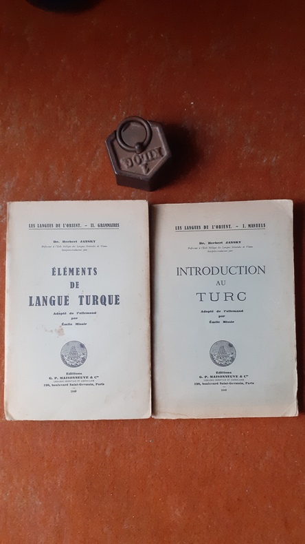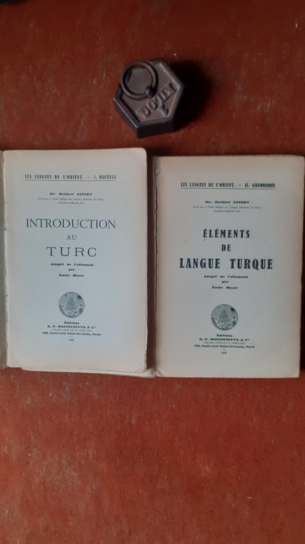 G.P. Maisonneuve & Cie, 1949, 2 vol. in-8 br. (16,5 x 24,5), 217 p./112 p., coll. "Les langues de l'Orient", une carte dépl. de la Turquie dans le second vol., bon état (peuvent être vendus séparément, nous consulter)