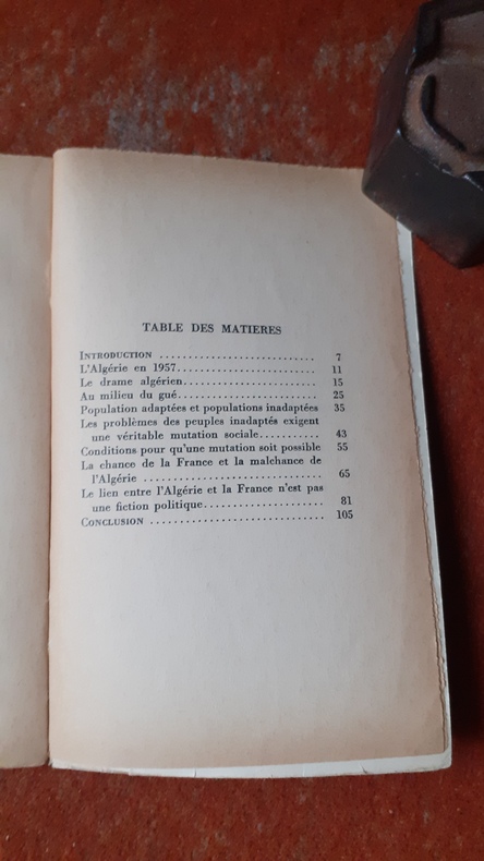 Ethnologue, Germaine Tillion a accompli, avant la guerre, cinq missions scientifiques dans l’Aurès, soit plus de quatre années de séjour complet entre 1934 et 1940. Elle s’est établie de nouveau dans la même région de décembre 1954 à mars 1955. C’est sur la demande de ses camarades de l’Association nationale des déportés et internés de la Résistance et pour leur revue “Voix et visages”, qu’elle a commencé cette étude, qui est aussi un témoignage. L’extraordinaire intérêt suscité aussitôt par ses articles l’a incité à accepter une publication en librairie qui vient à son heure. S’adressant à des Françaises patriotes et éprises de justice, Germaine Tillion leur pose la question : dans la situation inextricable où nous avons contribué à les mettre, avons-nous le droit d’abandonner les Algériens ? Voir le sommaire sur photos jointes.