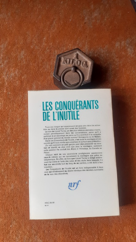 Gallimard. 1962. In-8. Broché. Etat passable, Tâchée, Dos plié, Papier jauni. 568 pages - annotation sur la page de titre - nombreuses photos et quelques cartes en noir et blanc hors texte - couverture contrepliée - couverture jaunie et tâchés.. . . . Classification Dewey : 796.522-Alpinisme