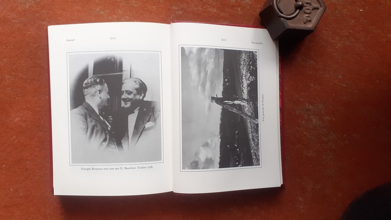 Paris - Genève Plon - La Palatine 1947 in 8 (21x14) 6 volumes brochés, couvertures à rabats, 353 pages [2], 430 pages [2], 333 pages [1], 287 pages [2], 311 pages [3], 369 pages [2]. Tome 1 : Sous le soleil de Satan. Tome 2 : L'imposture; La joie. Tome 3 : La grande peur des bien-pensants. Tome 4 : Journal d'un Curé de campagne; Une nuit. Dialogues d'ombres; Madame Dargent. Tome 5 : Les grands cimetières sous la lune; Saint Dominique. Tome 6 : Un crime; Monsieur Ouine. Première édition collective. Edition tirée à 3300 exemplaires numérotés. Ensemble en très bel état