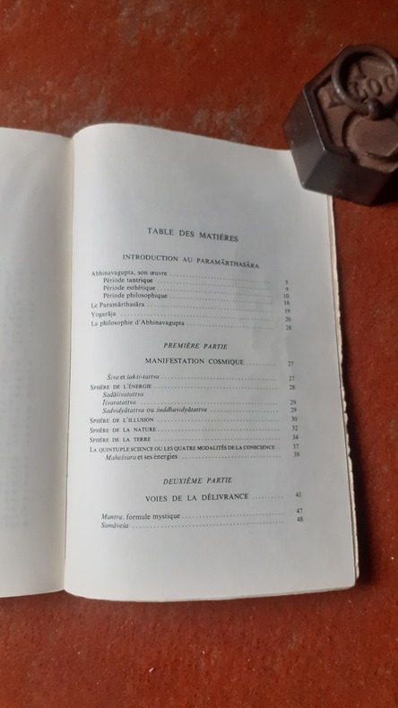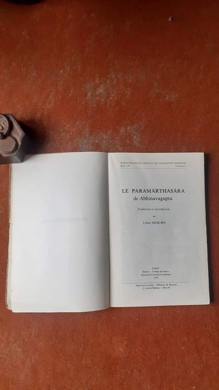 Le Paramārthasāra d’Abhinavagupta se présente comme un précis de la doctrine Trika. En l’espace de 105 vers (ou kārikā), il convoque de façon explicite ou implicite l’ensemble des notions du système, assujettissant leur exposé à l’organisation rigoureuse d’un discours proprement philosophique. Lilian Silburn, directeur de recherches honoraire au CNRS est une des autorités des plus éminentes dans le domaine du Sivaïsme du Cachemire et de l'oeuvre d'Abhinavagupta. Voir le sommaire sur photos jointes.