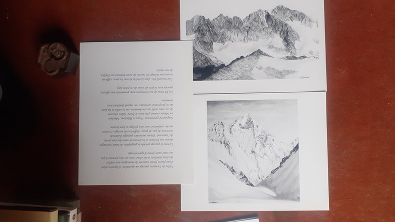 Chacune des gravures estaccompagnée d'un bref texte et de la signature de l'auteur. Nous le savions, Patrice de Bellefon a conduit une carrière de guide de haute montagne et, auteur de nombreuses premières, a vécu un authentique amateurisme. Nous n'ignorions pas que, passionné par l'approche et l'étude des paysages, il fut membre de la Commission Supérieure des Sites durant plus de vingt ans. Il a côtoyé des "maîtresses montagnes" de par le monde, mais surtout il connaît les Pyrénées de la mer à l'océan sous leurs plus divers aspects, naturalistes, historiques et humains. Il fut l'inspirateur et le principal acteur de l'inscription du massif du Mont-Perdu au Patrimoine de l'humanité. Nous ne connaissions pas ses penchants et dispositions pour l'aquarelle et le dessin. Cette exposition "Cimes Pyrénéennes : Galerie de portraits" nous révèle la sensibilité visuelle de ce montagnard éclectique. Au-delà de la fidélité de ses dessins de sommets, parmi les plus emblématiques de notre cordillère, nous percevons la profonde parenté de l'auteur avec ces montagnes qu'il a parcourues sur tous leurs versants. Ces paysages d'altitude, ces portraits de montagnes s'édifient sur des pas, des gestes, des regards, des efforts et des vertiges, et même des confidences avec leur structure géologique et leur histoire. Liste des montagnes illustrées : Aiguilles d'Ansabère, Pic du Midi d'Ossau, Balaïtous, Vignemale, Marboré, Munia, Mont-Perdu, Pic des Crabioules, Aneto, Mont Valier (2838 m), Catharsis.