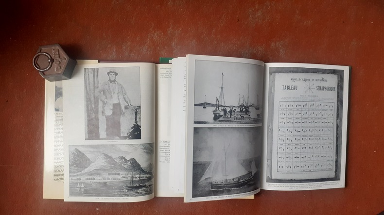 Nouméa, Editions du Cagou, 1987-1988, 2 vol. in-4 rel. cart. (22,5 x 30,5), 157 p.-157 p., 1ère édition, avant-propos de Jean Lèques, 170 gravures et photographies en n. et b. légendées et commentées, ex-dono, jaquettes, très bon état.